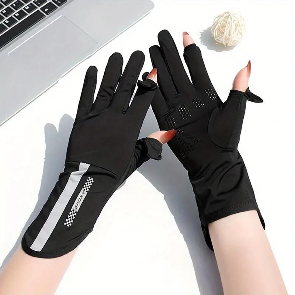 قفازات صيفية نسائية واقية من الشمس بدون أصابع وقابلة للتمدد