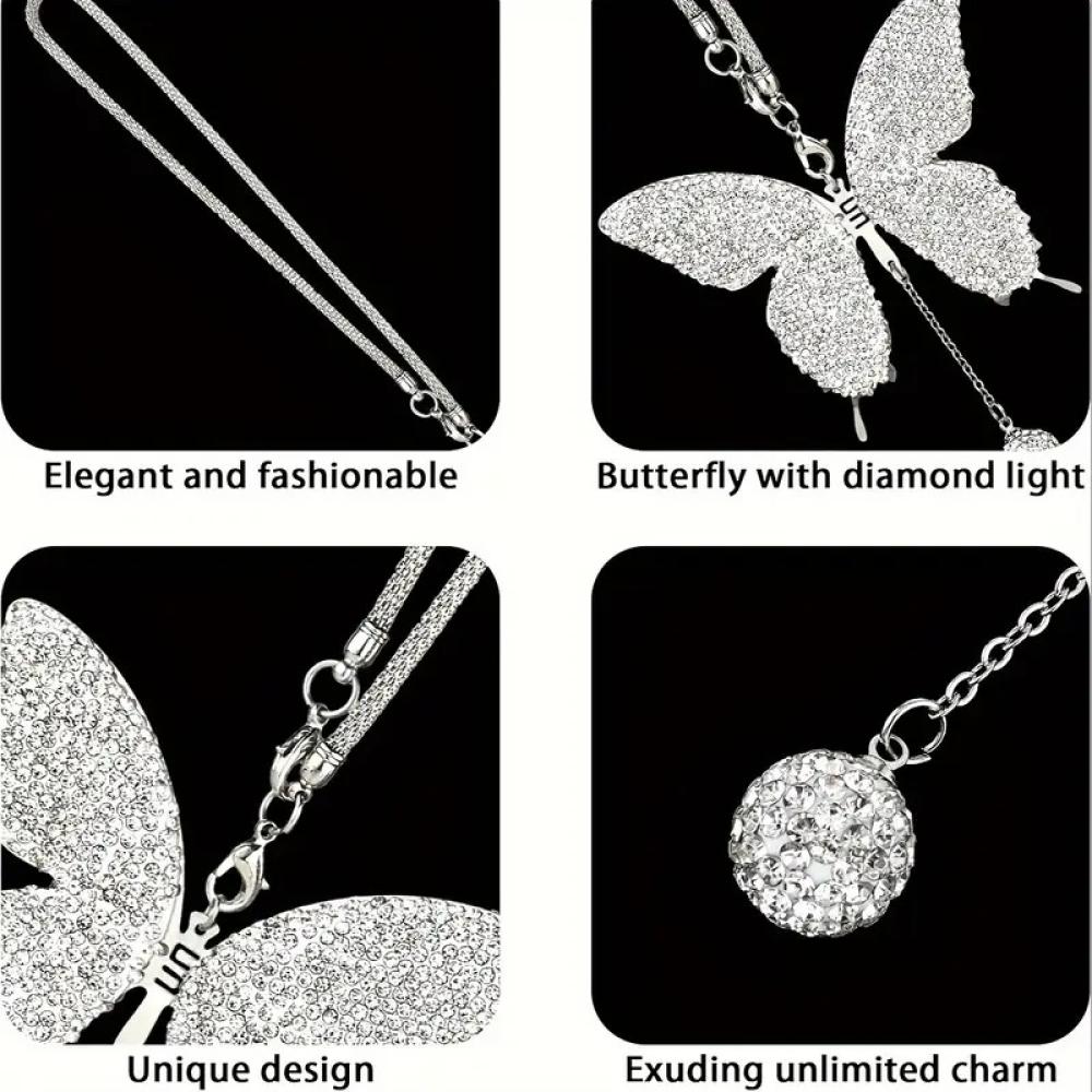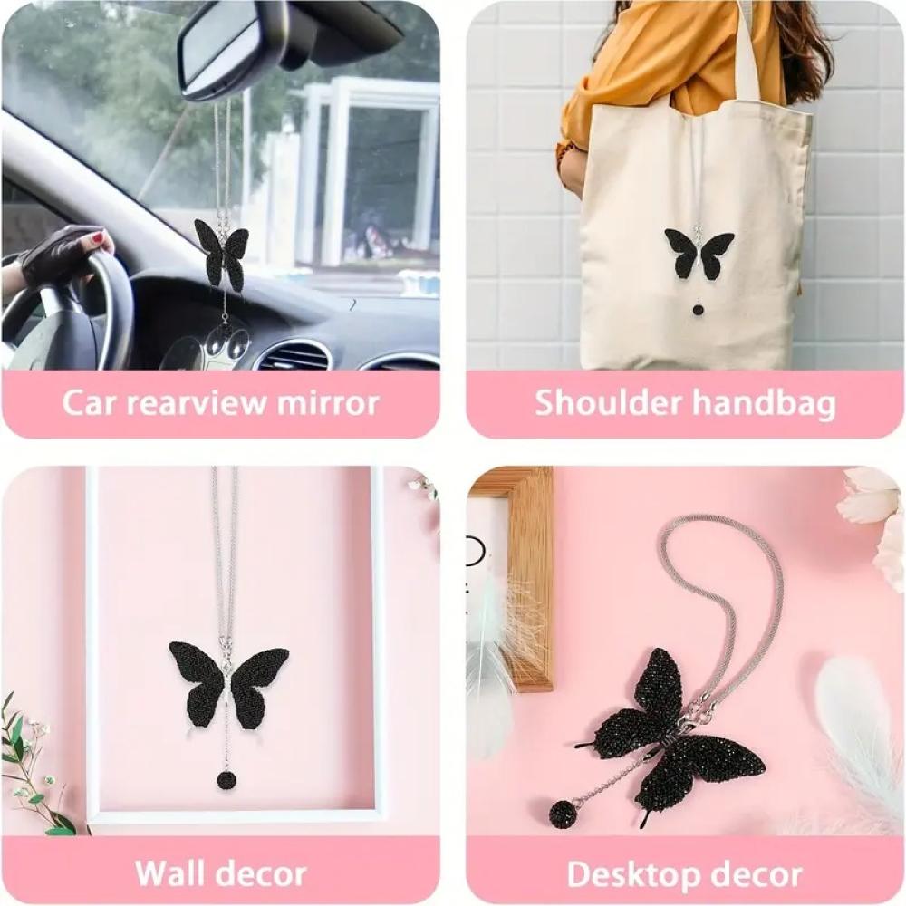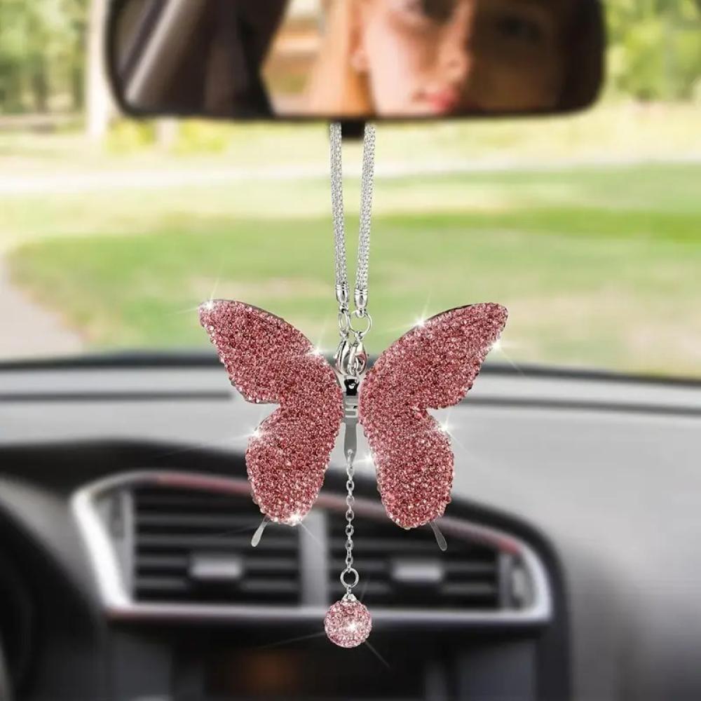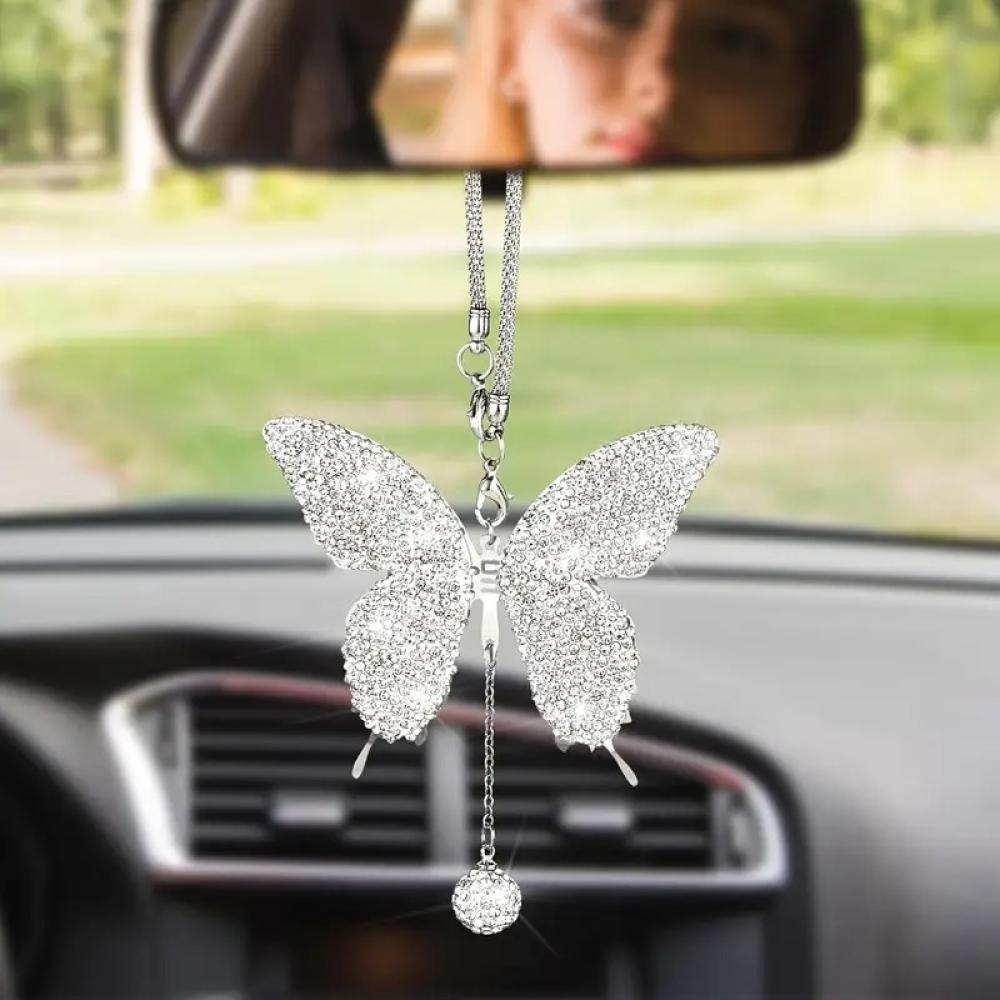 قلادة فراشة كريستالية لمرآة السيارة مزينة بالألماس